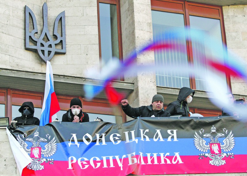 Ziņu aģentūras AFP žurnālists no Doņeckas ziņo, ka redzējis dodamies uz lidostu trīs kravas automašīnas, pilnas ar aizsargkrāsas formas tērpos ģērbtiem kaujiniekiem, no kuriem daudziem bijis piesprausts krievu nacionālistu simbols - Georga lentīte.