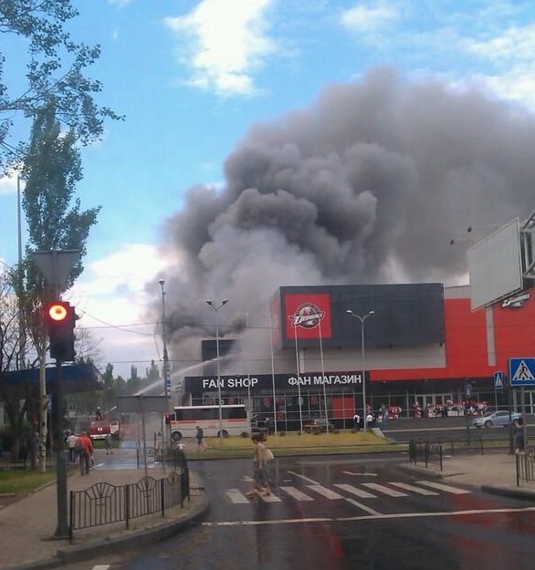 Sociālajos tīklos tiek ziņots, ka arēnu aizdedzinājuši bruņojušies kaujinieki, kuri pirms tam ir iznesuši biroja tehniku.