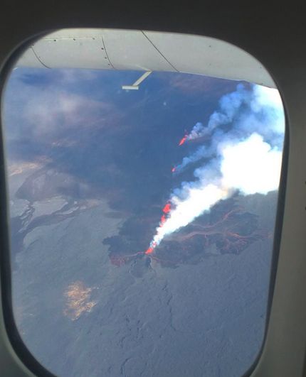 Icelandair pasažiere Erla Vinsý sociālajos tīklos vēsta: "Mūsu pilots veica papildus apli ap Bárðarbunga vulkānu, ļaujot pasažieriem aplūkot to no debesīm."