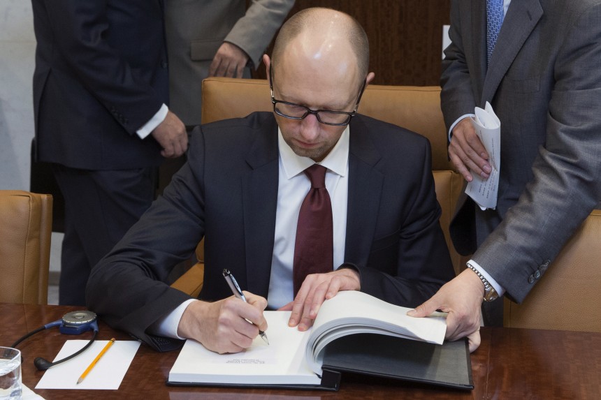 Izsakoties par Kijevas nodomu piešķirt Doņeckas un Luhanskas apgabala teritorijām īpašu statusu, Jaceņuks atzina, ka izvēle ir bijusi starp "sliktu un ļoti sliktu" lēmumu.