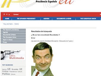 Interneta vietnē, kura veltīta Spānijas prezidentūrai Eiropas Savienībā (ES), 4. janvārī uz īsu brīdi parādījās komiskā personāža Mistera Bīna fotogrāfija, vēsta aģentūra AFP.