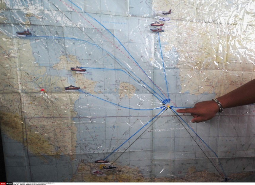 Priekšmeti, kuru vidū acīmredzot ir arī lidmašīnas durvis, pamanīti desmit kilometrus no vietas, kur 8501.reisa lidmašīna tika pēdējo reizi fiksēta uz radara ekrāniem.