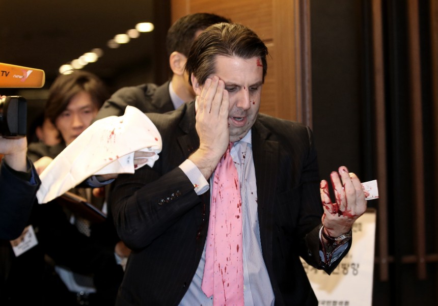 ASV jau komentējusi notikušo, nosaucot to par uzbrukumu "ASV un Dienvidkorejas aliancei", bet prezidents Baraks Obama jau nosūtījis laba vēlējumus cietušajam vēstniekam.