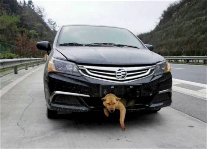 Pārsteidzošs gadījums noticis Ķīnā, kur automašīnas šoferis ir nobraucis aptuveni 400 kilometrus un tikai tad pamanījis, ka viņa auto priekšējā buferī ir iesprūdis suns.