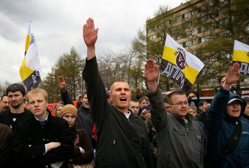 Pie Maskavas kluba apmeklētājiem atrasti vairāk nekā desmit naži, pneimatiskās pistoles un fīrera portrets, vēsta ziņu aģentūra "Interfax".