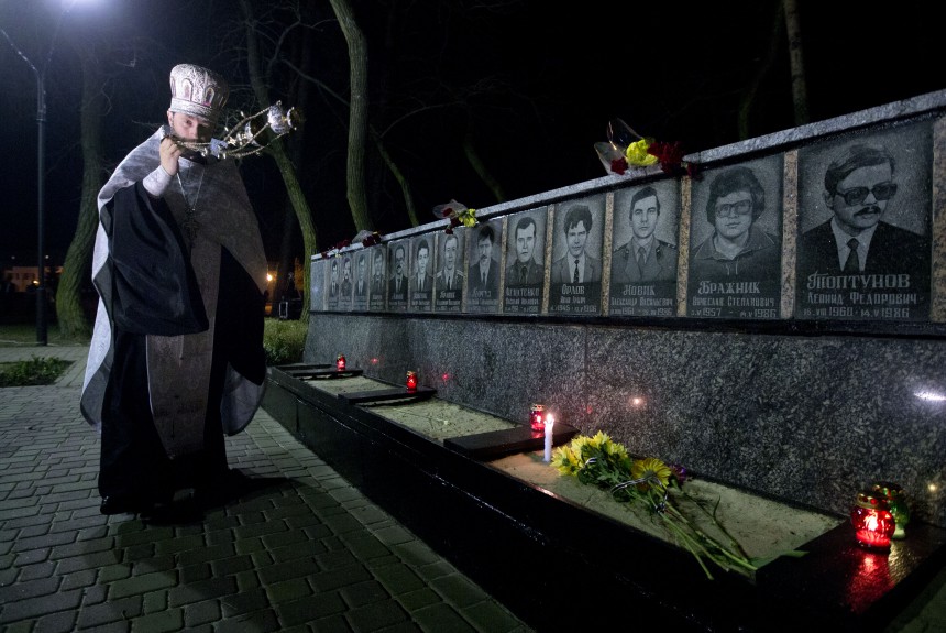 Vairāki desmiti cilvēku Slavutičas pilsētā, kas atrodas aptuveni 50 kilometru attālumā no avarējušās spēkstacijas, tieši sprādziena brīdī plkst.1:23 naktī aizdedza sveces un nolika ziedus pie piemiņas memoriāla.