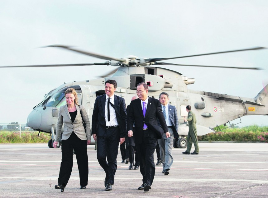 Pirmdien B. Gimuns, F. Mogerīni un Itālijas premjers Mateo Renci simboliskā vizītē viesojās uz Itālijas kara flotes kuģa San Giusto, kas regulāri piedalās nelaimē nokļuvušo ieceļotāju glābšanā. ANO līderis situāciju Vidusjūrā, kur kopš gada sākuma bojā gājuši vismaz