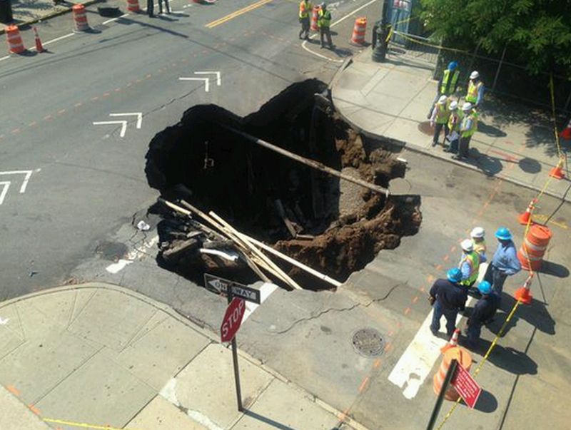 Otrdienas rītā Amerikas pilsētā Ņujorkā atvēries ielas vidū atvērusies zeme un izveidojies milzīgs caurums, ziņo usatoday.com.