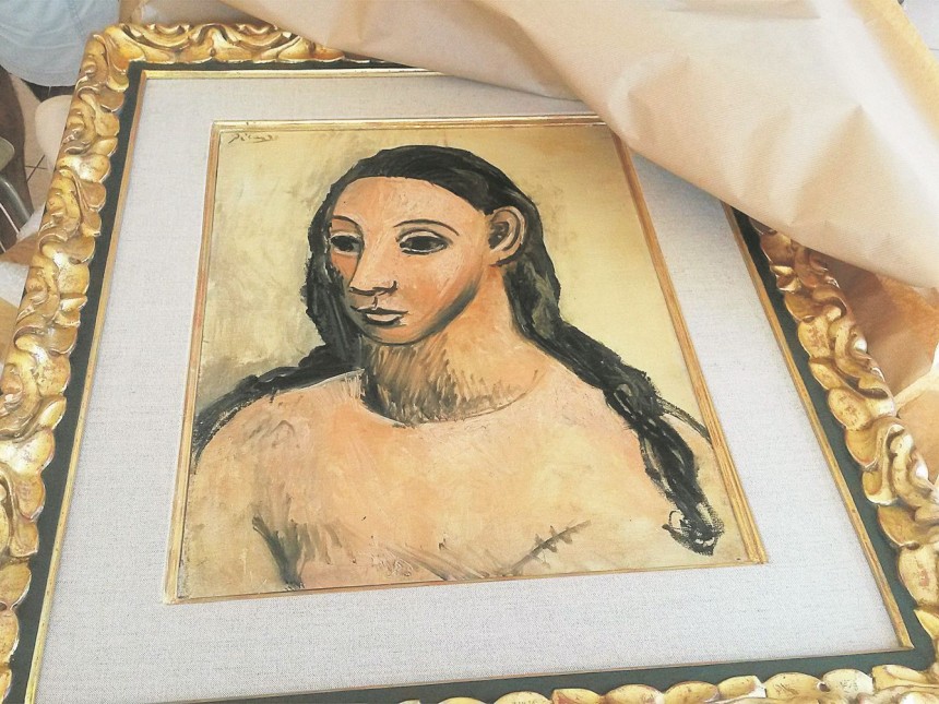 Pagājušajā piektdienā Francijas muita to konfiscējusi uz baņķierim Haimem Botinam (Jaime Botín) piederošās jahtas, kas piestājusi Korsikas salas ostā. Glezna esot bijusi akurāti satīta un ievietota futrālī jahtas kapteiņa kajītē. Darbs pēc Spānijas valdības pieprasījuma nodots tās rīcībā. Spānijas valdība uzskata, ka šis Pikaso darbs ir valsts nacionālā bagātība, ko drīkstot pārdot vienīgi Spānijas teritorijā. Valdības pārstāvji apgalvo, ka Haime Botins nolēmis to pārdot kādā no daudzajām mākslas darbu izsolēm. Tiek lēsts, ka Pikaso gleznas Jaunas meitenes galva tirgus vērtība esot vismaz divdesmit astoņi miljoni eiro.