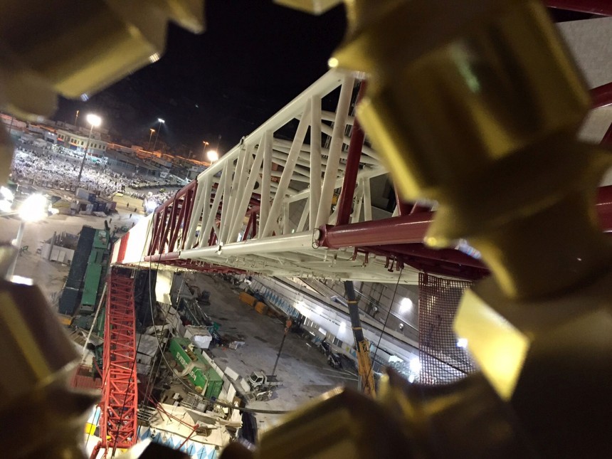 Krāns uzgāzies mošejai, jo sākusies liela smilšu vētra, kas vēlāk pāraugusi stiprām lietusgāzē. Vētras laikā mošejā lidojuši apkārt celtniecības materiāli, kā arī izsisti logi un izrauti koki. Cietušo vidū ir dažādu valstu pilsoni, tostarp Ēģiptes, Pakistānas un Indijas. Mošeju ieskāvuši vairāki ceļamkrāni, kas tur atrodas, lai veiktu būvniecības darbus, kuru rezultātā tiktu paplašināta mošejas platība un ietilpība. Nelaime notikusi vien 10 dienas pirms tā dēvētā “Haji” jeb svētceļojuma, kura laikā Mekā plānojuši ierasties ap 2 miljoniem cilvēku.