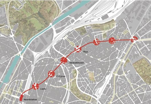 Tādā veidā tas pagarinās jau esošo ziemeļu-dienvidu premetro līniju, kas nākotnē kļūs par metro līniju 3 un savienos Skārbēkas un Everes pašvaldību. Plānotais metro līnijas pagarinājums no Ziemeļstacijas līdz Bordet lielāko daļu sekos tagadējam 55. tramvaja maršrutam.