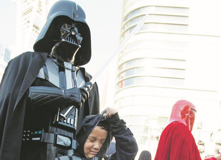 Pirmdienas vakarā (naktī uz otrdienu pēc Latvijas laika) trijos Losandželosas kinoteātros bija ieplānotas kinoepopejas Zvaigžņu kari jaunās sērijas Spēks mostas (The Force Awakens) svinīgās pirmizrādes, uz kurām aicināti filmas tapšanā iesaistītie, žurnālisti un goda viesi. Tāda ažiotāža pilsētā neesot novērojama pat dienās, kad tiek dalītas Oskara balvas. Jau kopš pagājušās nedēļas slēgta satiksme vairākos kvartālos, bet simtiem Zvaigžņu karu fanu vairāk nekā desmit dienas pavadījuši pie kinoteātriem, piektdien cerot kļūt par vieniem no pirmajiem ASV, kuriem izdevies noskatīties filmu.