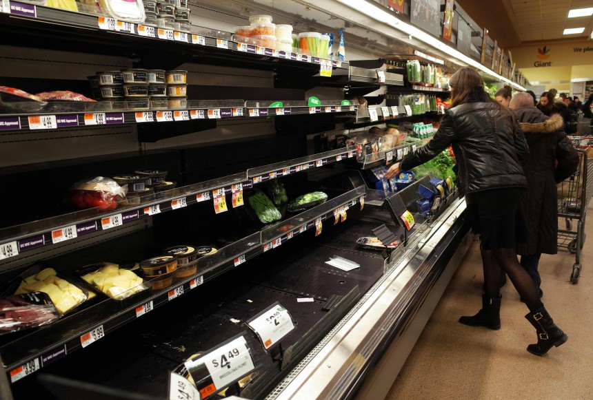 Cilvēki iztukšojuši pārtikas plauktus lielveikalos un vēl pirms vētras cenšas sagādāt sniega lāpstas un citu sniega tīrīšanas tehniku.