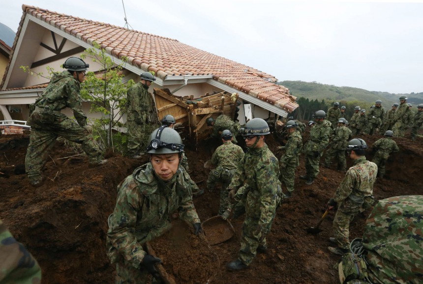 Šobrīd glābšanas darbos piedalās aptuveni 30 000 karavīri, kuri turpina meklēt izdzīvojušos.