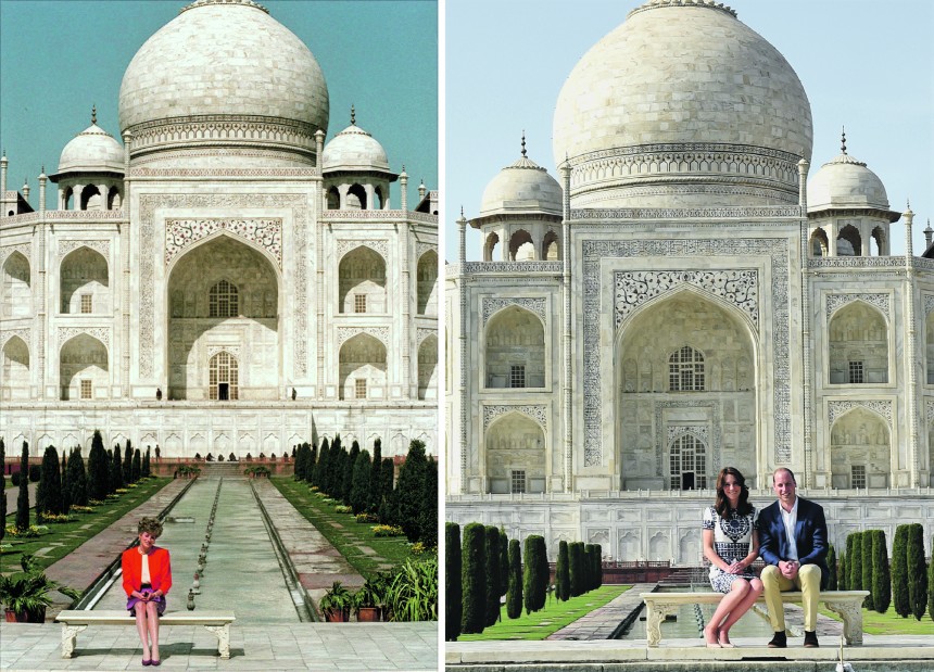 Īpašu mediju interesi izraisījušas Kensingtonas pils izplatītās fotogrāfijas, kurās pāris redzams sēžam un pozējam uz tā paša soliņa, uz kura pirms 24 gadiem sēdēja Viljama māte princese Diāna – viņa Tādžmahalu apmeklēja viena pati, jo domstarpības ar princi Čārlzu jau bija kļuvušas neatrisināmas.