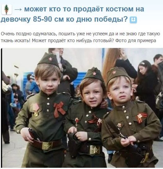 Tikmēr citi sociālo tīklu lietotāji pauž neizpratni par vecākiem, kuri, vēloties svinēt 9. maiju, gatavi savus bērnus ietērpt armijas uniformā. "Citur pasaulē mātes sapņo, lai viņu meitenes būtu laimīgas, mīlētas, bagātas, veselas. Mūsējās - lai varētu viņas ietērpt uniformā," ironizē līdzcilvēki