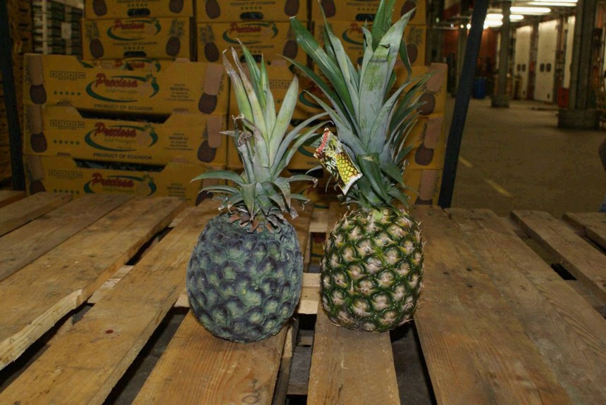 Muitas darbinieki apskates laikā pievērsuši uzmanību dīvaina izskata ananāsiem. Izsauktā policija atklājusi ananāsu mulāžās iepildītu kokaīnu.