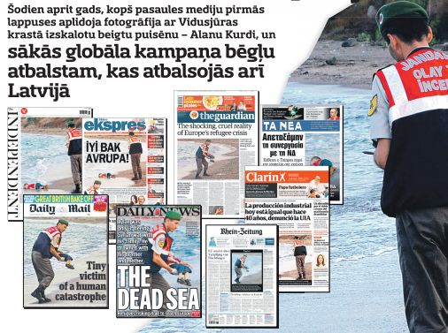 Šodien aprit gads, kopš pasaules mediju pirmās lappuses aplidoja fotogrāfija ar Vidusjūras krastā izskalotu beigtupuisēnu – Alanu Kurdi, un sākās globāla kampaņa bēgļu atbalstam, kas atbalsojās arī Latvijā. Tajā pašā dienā tobrīd vēl valdošā partija Vienotība aktrises Katrīnes Pasternakas balsī paziņoja: «Atbildība. Līdzcietība. Gods. Šobrīd šīs ir mūsu trīs zvaigznes.»