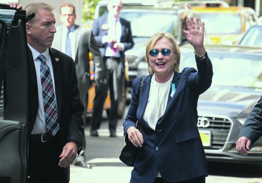 Svētdien piedaloties 2011. gada 11. septembra terora aktu piemiņas ceremonijā Ņujorkā, kandidāte esot saļimusi, pēc kā štāba pārstāvji paziņoja, ka viņai esot pneimonija, taču neesot šaubu, ka