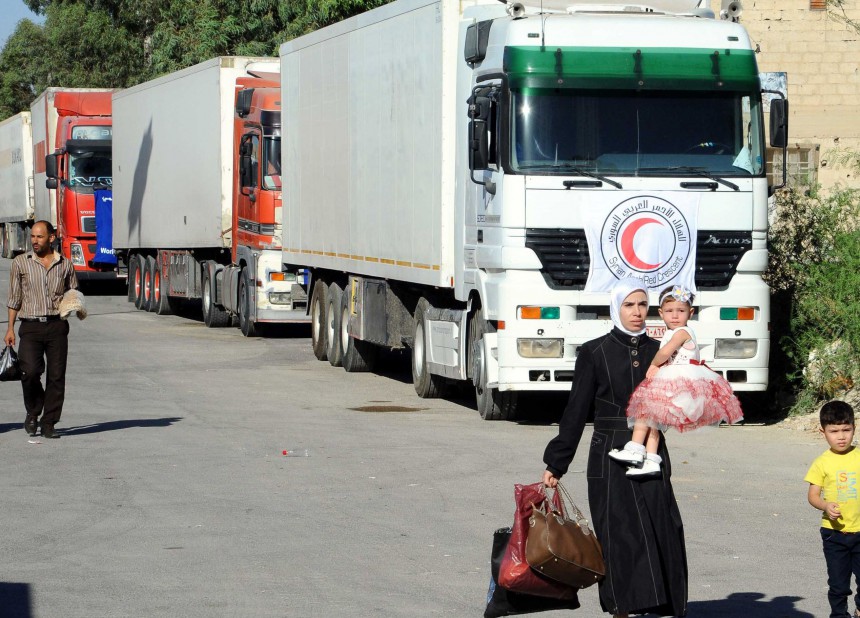 Britu raidorganizācija BBC informē, ka 71 automašīna ar humāno palīdzību sasniegusi pilsētas, kas atrodas netālu no Damaskas. Automašīnās ievietotie medikamenti, ēdiens un citas preces paredzētas aptuveni 60 000 cilvēku.