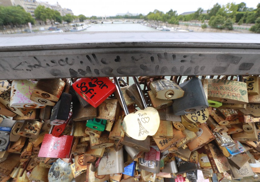 Nedaudz vairāk nekā pirms gana no Parīzes tiltiem tika noņemtas aptuveni miljons "mīlas slēdzenes", kuras tur novietoja jaunlaulātie tādējādi apliecinot mūžīgu mīlestību. Kopumā šīs slēdzenes svērušas 65 tonnas.