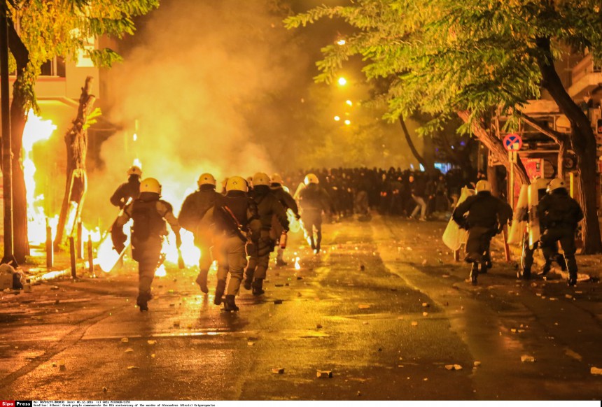 Aptuveni 1000 cilvēki bija devušies gājienā, protestējot pret 15 gadīgā Grigoropula nošaušanu, ko 2008.gadā izdarīja kāds policists Eksarhijas rajonā un kas izprovocēja nekārtības Grieķijas galvenajās pilsētās.
