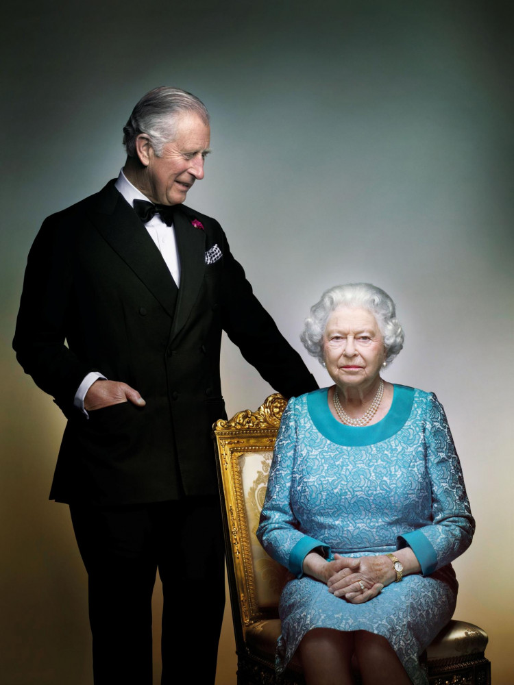 Fotogrāfijā ir attēlota Lielbritānijas karaliene Elizabete II kopā ar viņas dēlu princi Čārlzu Vindsoras pilī.
