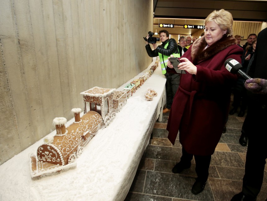 Vilciena pagatavošanā ir izmantoti 700 kilogrami piparkūku mīklas un tā veidošanā palīdzēja aptuveni 800 skolēni. Šo vilcienu visiem interesentiem svinīgā ceremonijā atklāja Norvēģijas premjerministre Erna Solberga.
