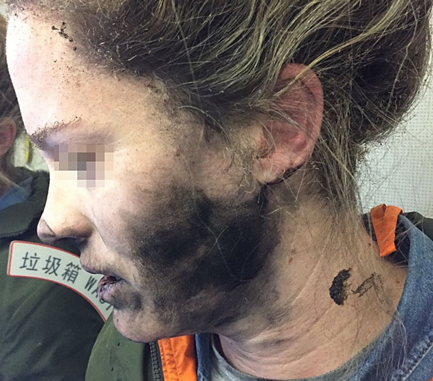 Fotogrāfijās no notikuma vietas bija redzama vārdā nenosauktā sieviete ar nomelnējušu seju un kaklu un apdeguma tulznām uz rokām. Pasažieri līdz reisa beigām bija spiesti paciest kūstošas plastmasas, degošas elektronikas un apdegušu matu smaku.