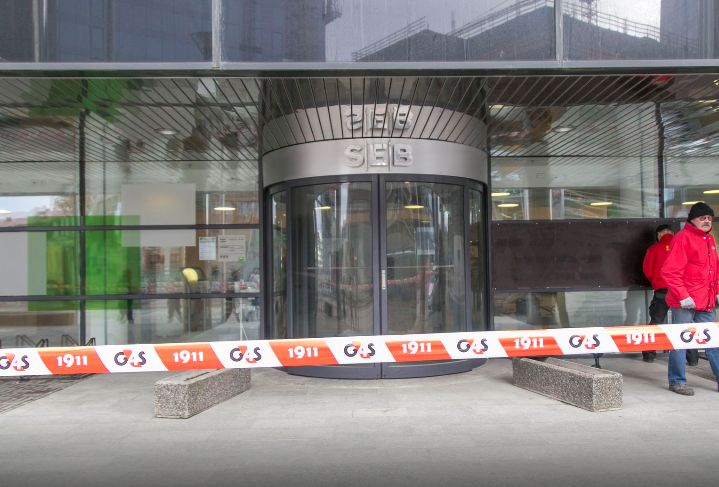 Šodien kāds vīrietis ar cirvi ielauzies "SEB bankas" birojā Tallinas centrā, vēsta "Postimees".