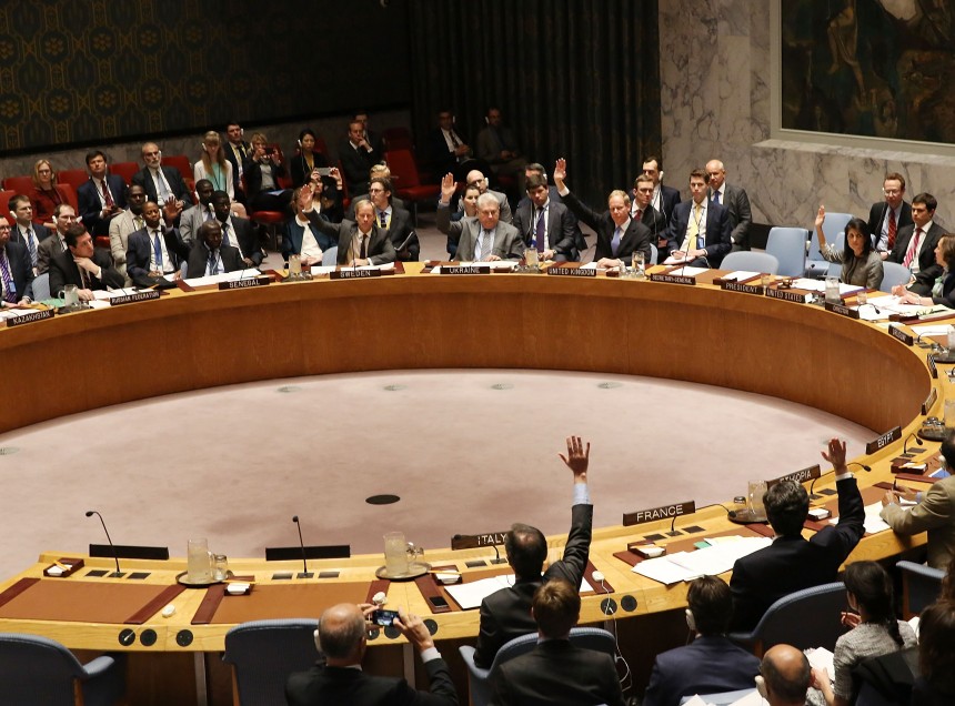 Rezolūcijas projektu bija sagatavojušas ASV, Francija un Lielbritānija.