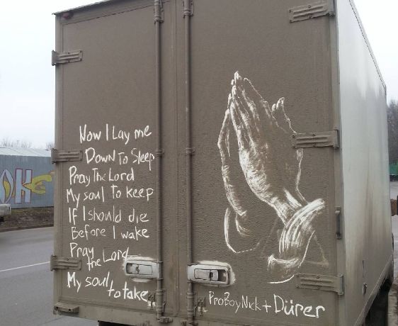 36 gadus vecais Ņikita Golubevs ir mākslinieks, kurš vien ar pirkstu un netīrumu palīdzību uz automašīnām Maskavā radījis patiesi iespaidīgus zīmējumus.