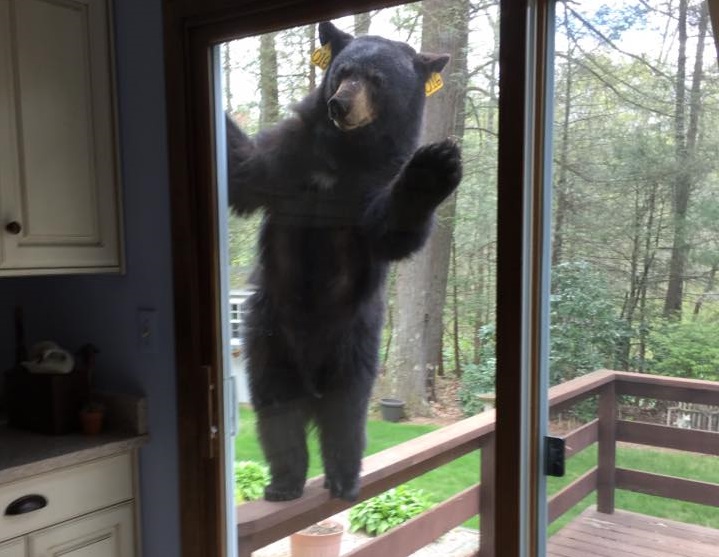 Sieviete esot cepusi kūciņas un pēkšņi pamanīja, ka pie virtuves durvīm stāv liels lācis, kurš mēģina tikt iekšā mājā. Sirmgalve ļoti izbijās un piezvanīja savam kaimiņam, lai tas atnāk palīgā. Sievietes kaimiņš Bobs Belfiors neticēja savām acīm ,kad ieraudzīja, ka kaimiņiene nav viņu apmānījusi un mājas ārpusē tik tiešām atrodas lācis.