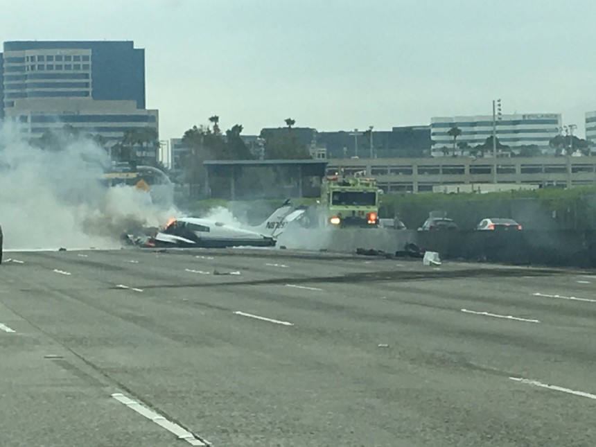 Lidmašīna "Cessna 310" nogāzās uz 405.starpštatu maģistrāles netālu no Džona Veina lidostas skrejceļa, paziņoja Federālās aviācijas pārvaldes (FAA) preses sekretārs.