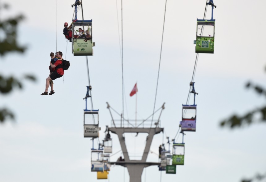 Pēc tam, kad viens no gaisa trošu vagoniem ietriecies balstā, vairāki desmiti cilvēku Vācijas pilsētā Ķelnē bijuši spiesti vairākas stundas pavadīt gaisa vagoniņus, vēsta britu raidsabiedrība BBC.
