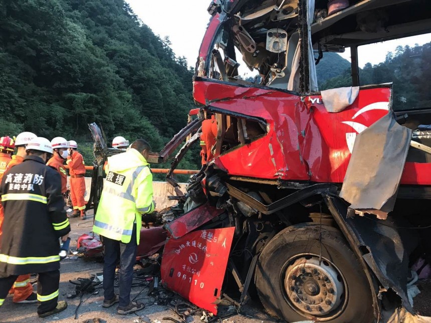 Autobuss, kas bijis ceļā no Čendu Ķīnas dienvidrietumos uz Luojanu valsts centrālajā daļā, iebraucot tunelī, ietriecies tā sienā.
