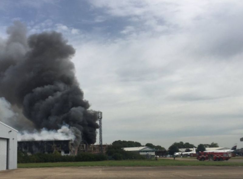 LATEST: Fire in an aircraft hangar at Southend Airport. Multiple fire crews are tackling.