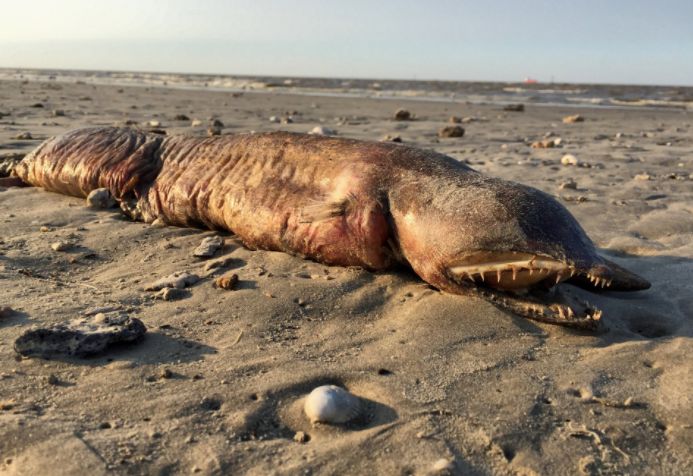 Kā vēsta britu raidsabiedrība BBC, tad pēc vētras "Hārvijs" Teksasas piekrastē izskalota nezināma okeāna radība.