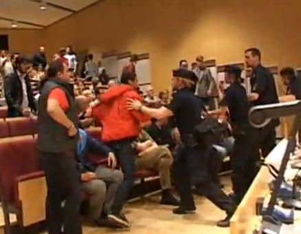 Lekcijas laikā māksliniekam uzbrucis kāds vīrietis, kurš ar savu galvu iesitis pa Larsa Vilka galvu. Karikatūrisam uzbrukumā salauztas brilles, bet viņš pats nav guvis savainojumus. Pēc uzbrukuma auditorijā sācies haoss, jo citi musulmaņu jaunieši klieguši un iesaistījušies sadursmēs ar apsargiem, ziņo Associated Press. Policija pēc notikuša aizturēja divus jauniešus.