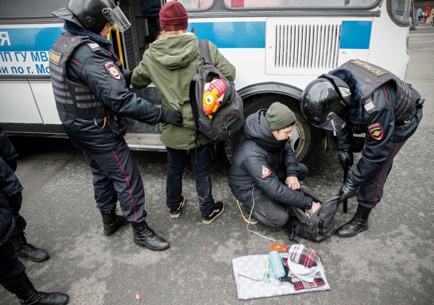 Daudziem svētdien Maskavā aizturētajiem bijuši naži, kastetes, gumijas ložu pistoles, vēsta ziņu aģentūra TASS. Policija aktīvistus aizturējusi pēc viņu pārmeklēšanas.