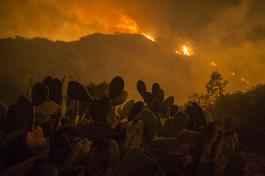Tikmēr Sandjego apgabalā plosās cits ugunsgrēks, kurā nodegušas 157 ēkas, gājuši bojā 46 sacīkšu zirgi un viens cilvēks guvis smagus apdegumus. Ugunsdzēsējiem šo ugunsgrēku izdevies gandrīz pilnībā savaldīt.