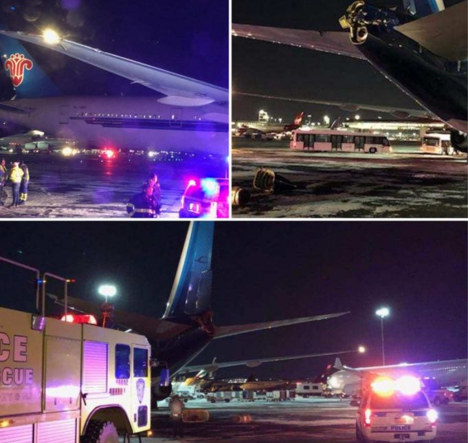 Lidmašīnu sadursme seko pēc tam, kad ceturtdien sniegputenis lika uz laiku slēgt Kenedija lidostu, un pasažieri joprojām spiesti kavēšanās dēļ stundām gaidīt termināļos vai lidmašīnās.
