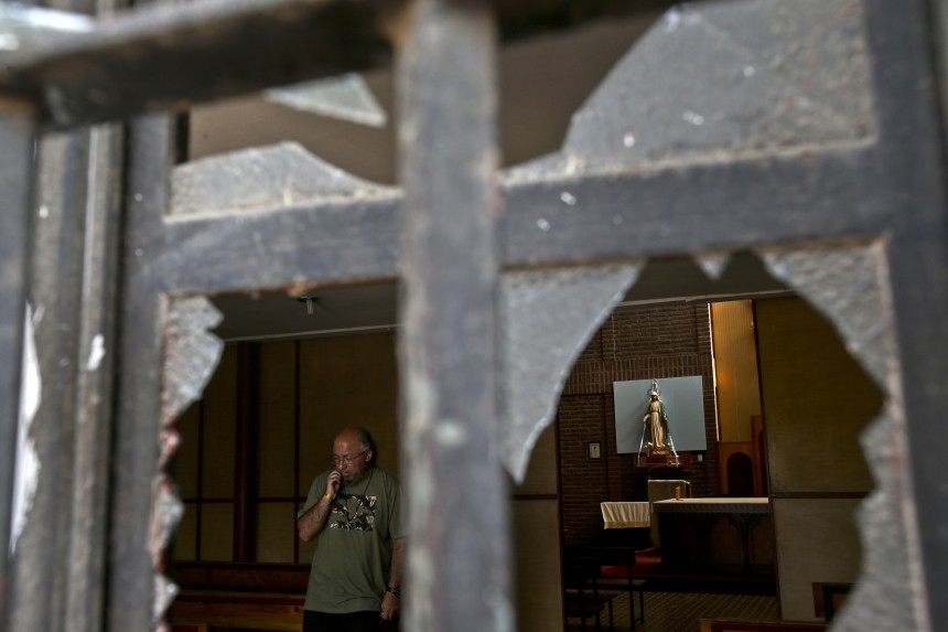 "Pāvest Francisk, nākamās bumbas būs tavā sutanā," teikts skrejlapā, kas atrasta pie Svētās Izabellas baznīcas Santjago rietumos, kurai spridzeklis bojājis durvis un logus.
