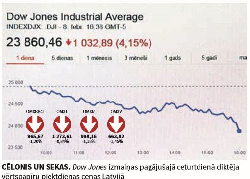 Piektdienas sesija Amerikā deva skaitliski noformētu pamatu solījumiem, ka Dow Jones un visu pārējo indeksu kritumam nebūšot nekādu ļaunu seku ne reālajā ekonomikā, ne cilvēku sadzīvē. Amerikā notiekot tikai naudas pārkrāmēšana no akciju tirgus uz ASV valdības parādzīmēm. To nokārtojusi ASV Federālo Rezervju sistēma (eiropiešu terminoloģijā centrālā banka), tikai ieminoties par refinansēšanas likmju paaugstināšanu, kas padara neizdevīgu aizlienētas naudas ieguldīšanu spekulācijās ar vērtspapīriem. Tādējādi ASV valdība tikšot pie naudas un garantēšot stabilitāti ja ne visā pasaulē, tad pašā Amerikā un Latvijā jau nu noteikti.