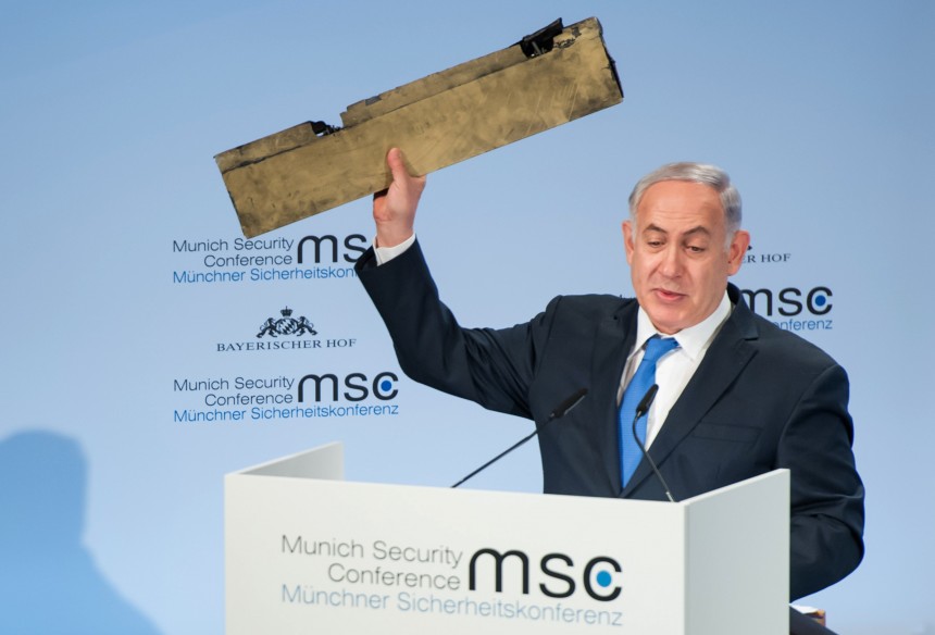 Izraēlas premjerministrs Benjamins Netanjahu svētdien Minhenes Drošības konferencē brīdinājis Irānu "nepārbaudīt Izraēlas apņemšanās stingrību", rādīdams klātesošajiem prāvu metāla gabalu, kas, pēc viņa teiktā, ir atlūza no Irānas bezpilota lidaparāta, kurš nesen ielidojis Izraēlas gaisa telpā.
