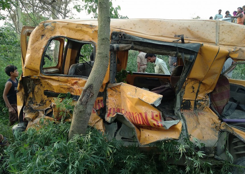 Negadījums noticis dzelzceļa pārbrauktuvē Utarpradešas štatā. Visi cietušie un bojāgājušie bērni ir jaunāki par desmit gadiem.
