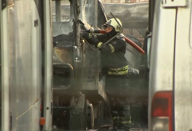 Brīdī, kad notikuma vietā ieradušies glābēji, liesmas jau plosīja 14 auto. Ugunsgrēka iemeslus skaidros policija.
