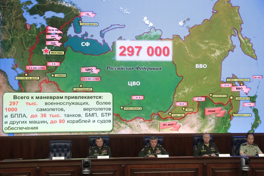Manevros piedalīsies aptuveni 300 000 karavīru un 1000 lidaparātu, 36 000 tanku, bruņutransportieru un citu mašīnu, līdz 80 kuģiem, teikts ministrijas paziņojumā.