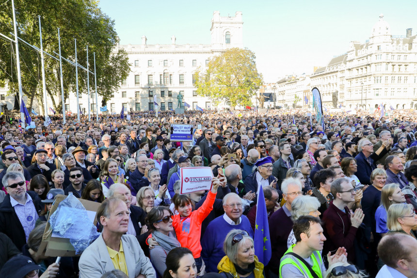 Londonā sestdien notiek vērienīgā demonstrācijā, tās dalībniekiem prasot rīkot vēl vienu referendumu par valsts izstāšanos no Eiropas Savienības (ES).