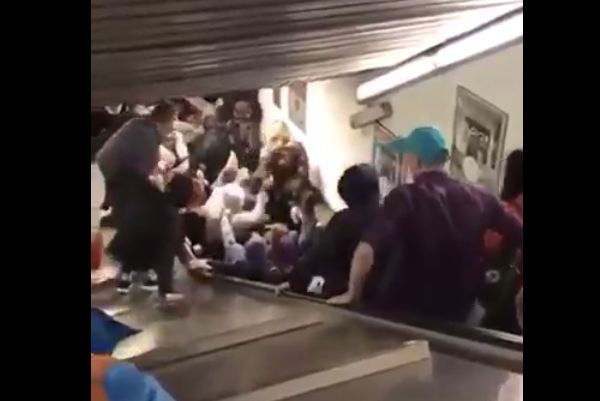 Eskalatoram pēkšņi palielinot ātrumu, cilvēki nokrita tā pakājē.